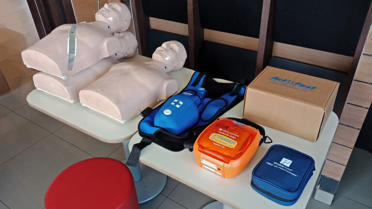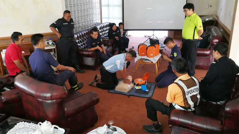By providing the user training to the government at Tanjung Manis to ensure that they know how to perform CPR together with AED 3100K.